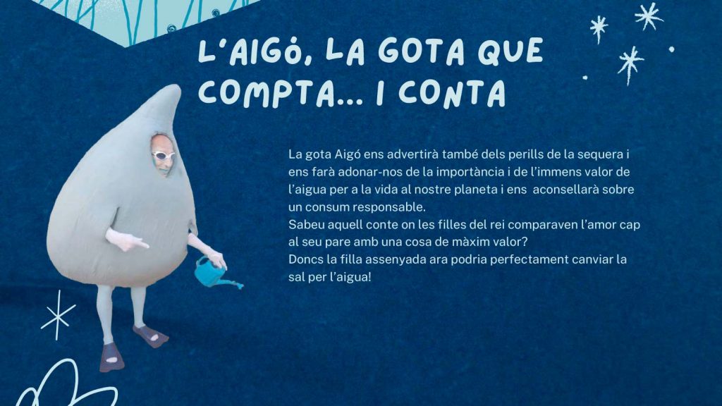 L’aigó ens explica la importància de l’aigua per a la vida en el planeta i també la seva vida, el seu cicle inacabable. Una forma amena i teatralitzada d’acostar coneixements del medi als infants i de conscienciar del canvi climàtic i les seves perilloses conseqüències: sequera, desertització, catàstrofes… Això comporta adoptar actituds i pràctiques més sostenibles i responsables.